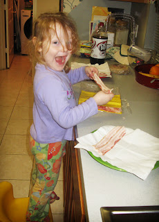 Lila on our "breakfast for dinner" night. (Please ignore the hair in the face!)